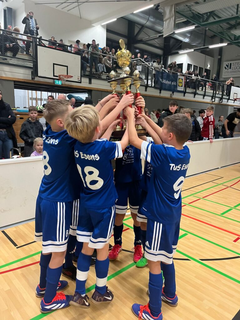 Nach dem Turniersieg am letzten Wochenende in Norden konnten die Jungs der E2 ihren Lauf in Marienhafe fortsetzen. In der gut gefüllten Kurt-Knippelmeyer Halle ließen unsere Jungs vom ersten Spiel an Ball und Gegner laufen und konnten nach vier Siegen mit 14:2 Toren als Gruppensieger ins Halbfinale einziehen. Dort drehten die jungen Bärenstädter erst richtig auf und sicherten sich mit einem eindrucksvollen 9:0 Sieg gegen Eintracht Plaggenburg das Finalticket. Hier wartete mit der JSG Leybucht ein körperlich scheinbar übermächtiger Gegner. Nach kurzem Abtasten und einem 1:1 Zwischenstand zeigten unsere 2016er jedoch ihre ganze spielerische Klasse und konnten unter dem Jubel der vielen Zuschauer mit tollen Spielzügen das Finale mit 7:1 für sich entscheiden. Lohn dafür der XXL Störtebeker Cup Wanderpokal und die Gewissheit im nächsten Jahr als Titelverteidiger wiederkommen zu dürfen.