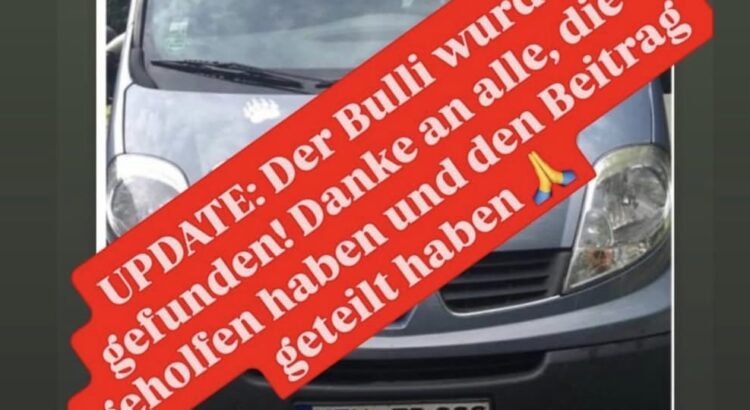 Einer unserer Bullis verschwand daraufhin kurzzeitig – glücklicherweise konnte er dank der schnellen Hilfe vieler Mitglieder und Unterstützer schon bald wieder aufgefunden werden. Der Vereinsvorstand möchte sich an dieser Stelle ganz herzlich bei allen bedanken, die durch das Teilen unserer Beiträge dazu beigetragen haben, dass der Bulli so schnell wieder zurück bei uns ist. Es hat uns sehr beeindruckt, die weit sich diese Nachricht in so kurzer Zeit verbreitet hat!