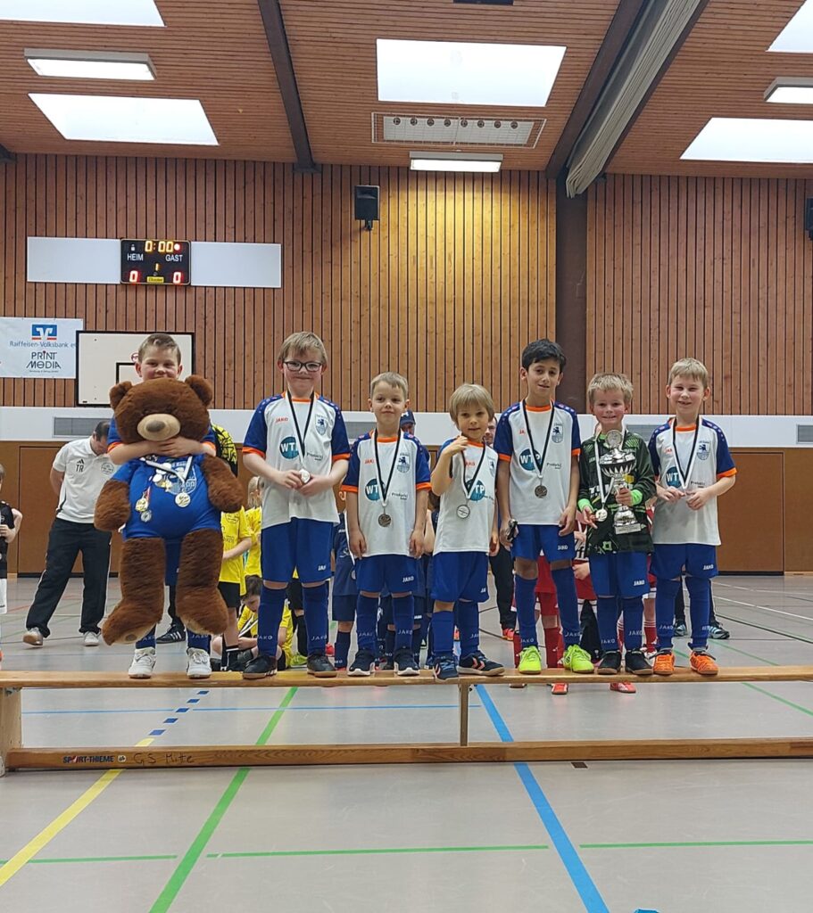 Am Samstag konnte die jüngste Vertretung vom TuS ihr erstes Hallenturnier für sich entscheiden und belegte am Ende vor dem Aurich-Cup-Gewinner JSG Delmenhorst den 1. Platz. Gespielt wurde auf einem verkürzten Spielfeld mit vier Feldspielern und einem Torwart. Beim Spielmodus Jeder gegen Jeden konnten die Bärenstädter fünf Siege ohne Gegentreffer und ein Unentschieden auf ihr Konto verbuchen. Lediglich gegen die JSG aus Delmenhorst trennte man sich 2:2. Zum besten Spieler des Turniers wurde unser Esenser Ahmad Yusef gewählt.
